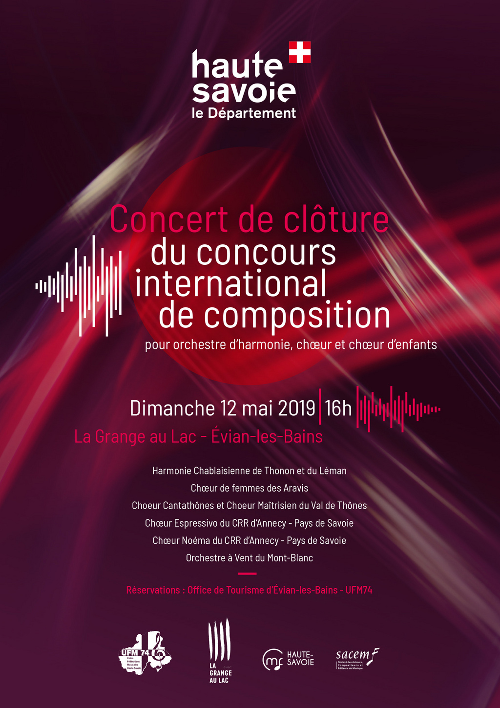L'Union des Fédérations Musicales de Haute-Savoie organise la première édition du Concours International de Composition pour Orchestre d'Harmonie, chœur et chœur d'enfants, avec le soutien du Département de la Haute-Savoie et en partenariat avec les Établissements d'Enseignements Artistiques du Département.