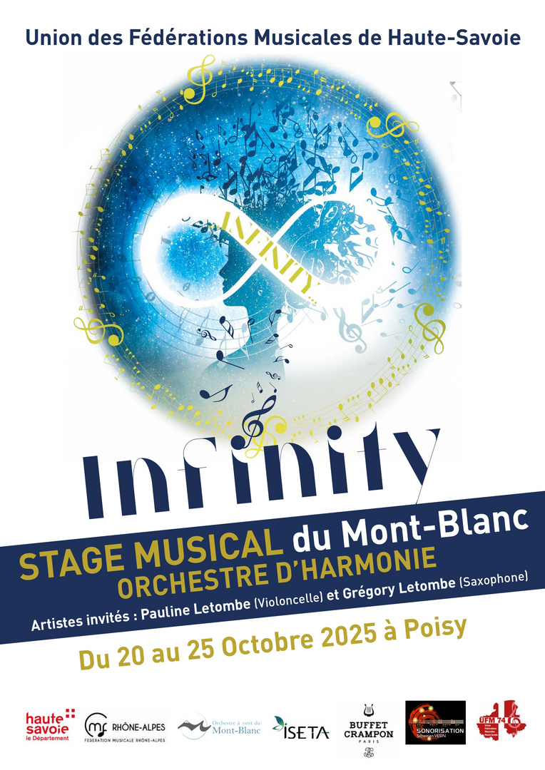 Rejoignez l'Orchestre à Vent du Mont-Blanc, issu du Stage Musical du Mont-Blanc, stage départemental de l'Union des Fédérations Musicales de Haute-Savoie/CMF Haute-Savoie et son projet “Infinity”.
